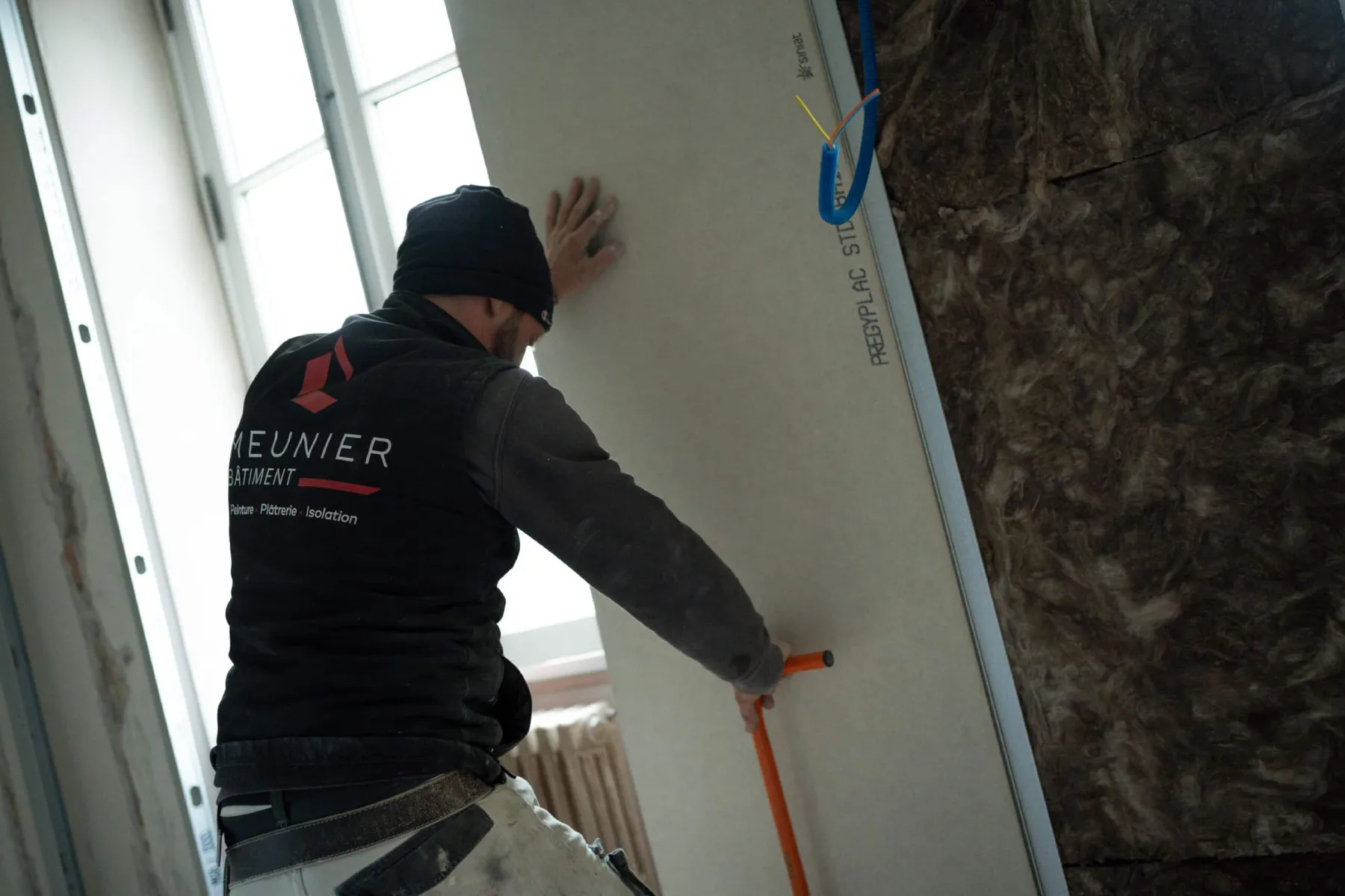 Dans un bâtiment, les cloisons et l’isolation ne sont pas juste des éléments techniques : ce sont les bases du confort au quotidien. Chez Meunier Bâtiment, nous intervenons aussi bien dans le neuf qu’en rénovation, pour les particuliers comme pour les professionnels.